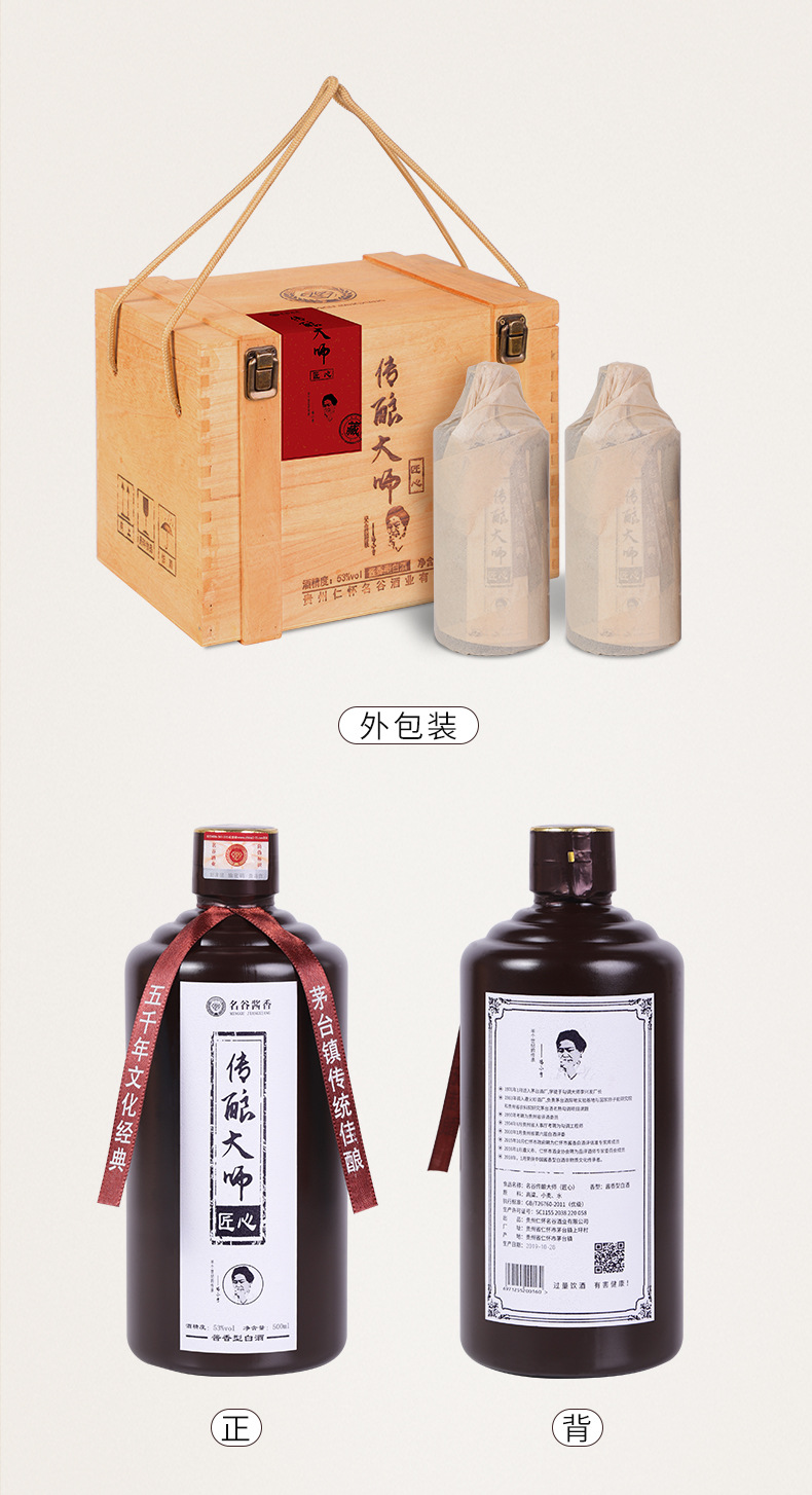 名谷傳釀大師醬香型白酒整箱批發 純糧食坤沙酒